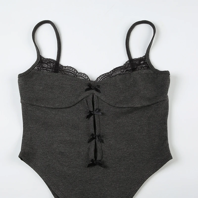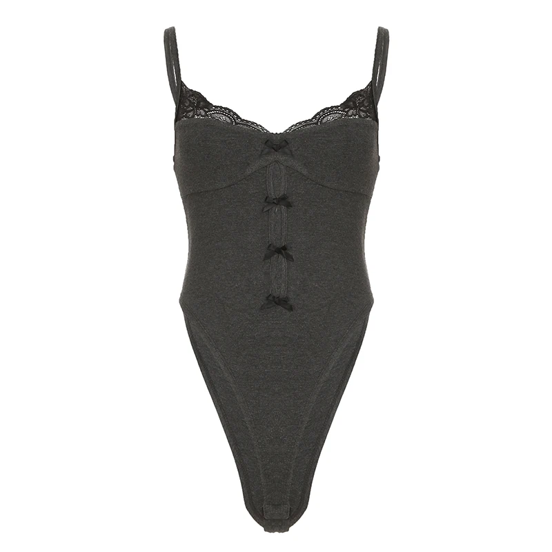 Un style unique avec Body Dentelle Femme Gris À Nœuds Et Décolleté En Dentelle Noire