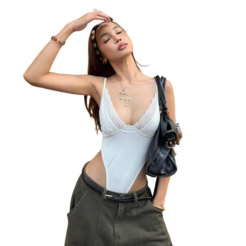 Tout ce qu’il vous faut : Body Dentelle Femme Streetwear Et Élégant À Col En V