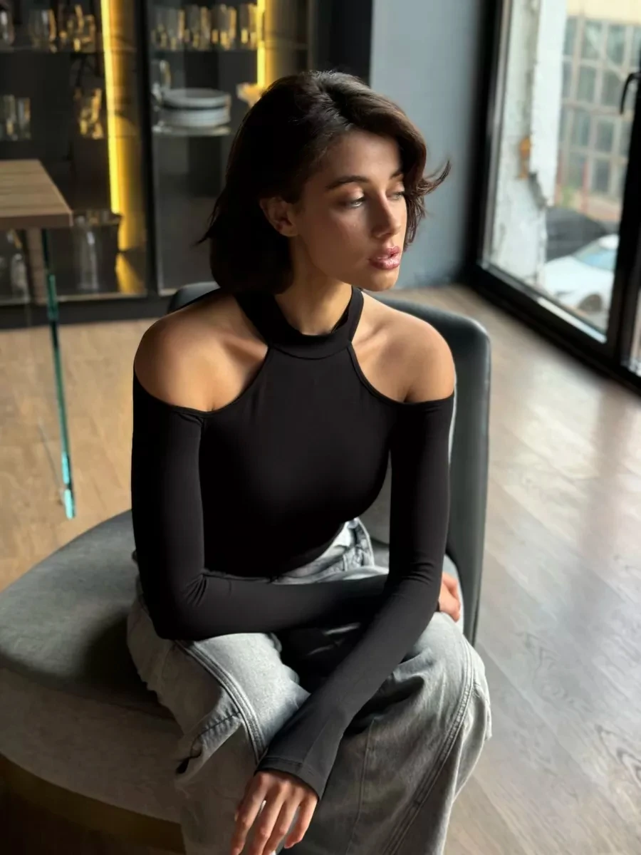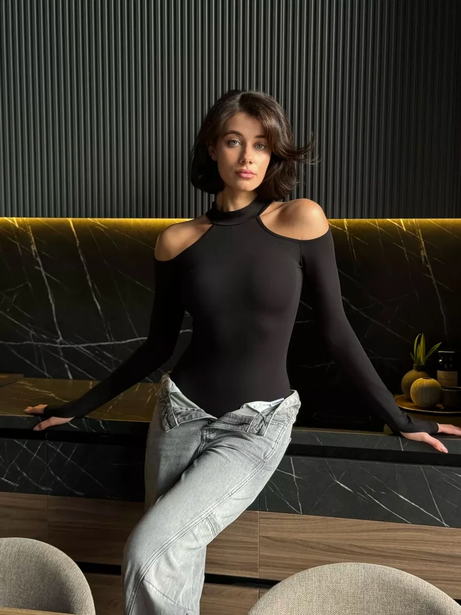 Craquez pour notre Body Femme Manche Longue Noir Épaules Dénudées