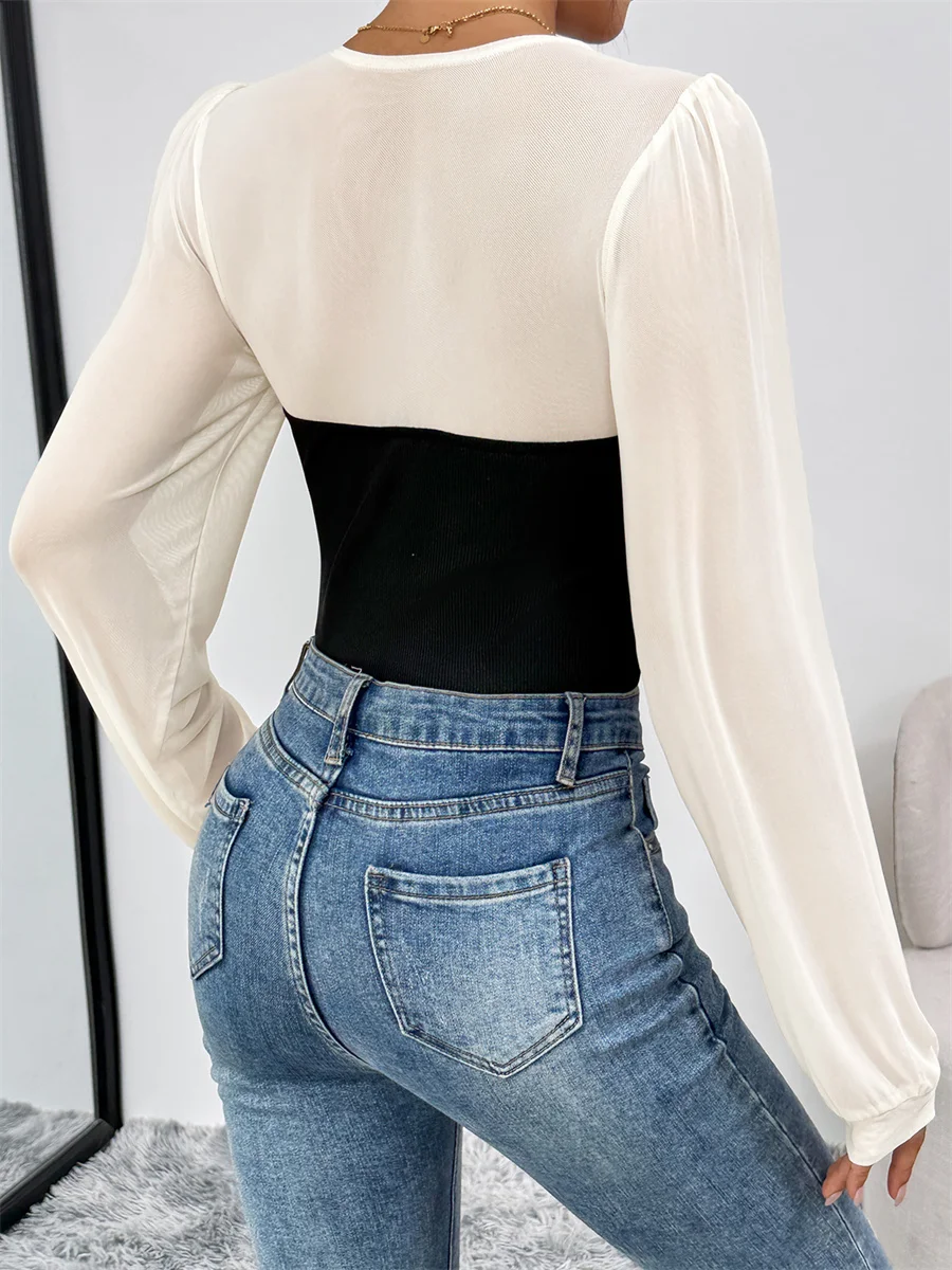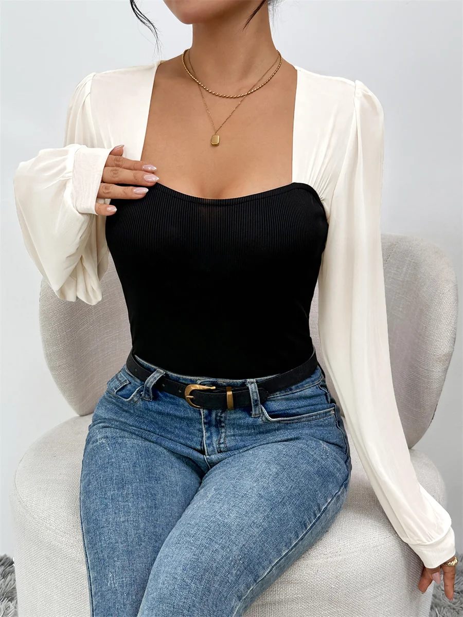 Ce body s’intègre facilement à toutes les situations, que ce soit pour un look de bureau avec un pantalon tailleur, une sortie décontractée avec un jean ou une tenue chic pour une soirée avec une jupe. Sa polyvalence évite les dilemmes de style tout en simplifiant la composition de vos looks. Avec le body bicolore, vous pouvez passer d’une tenue informelle à une allure soignée en un rien de temps.