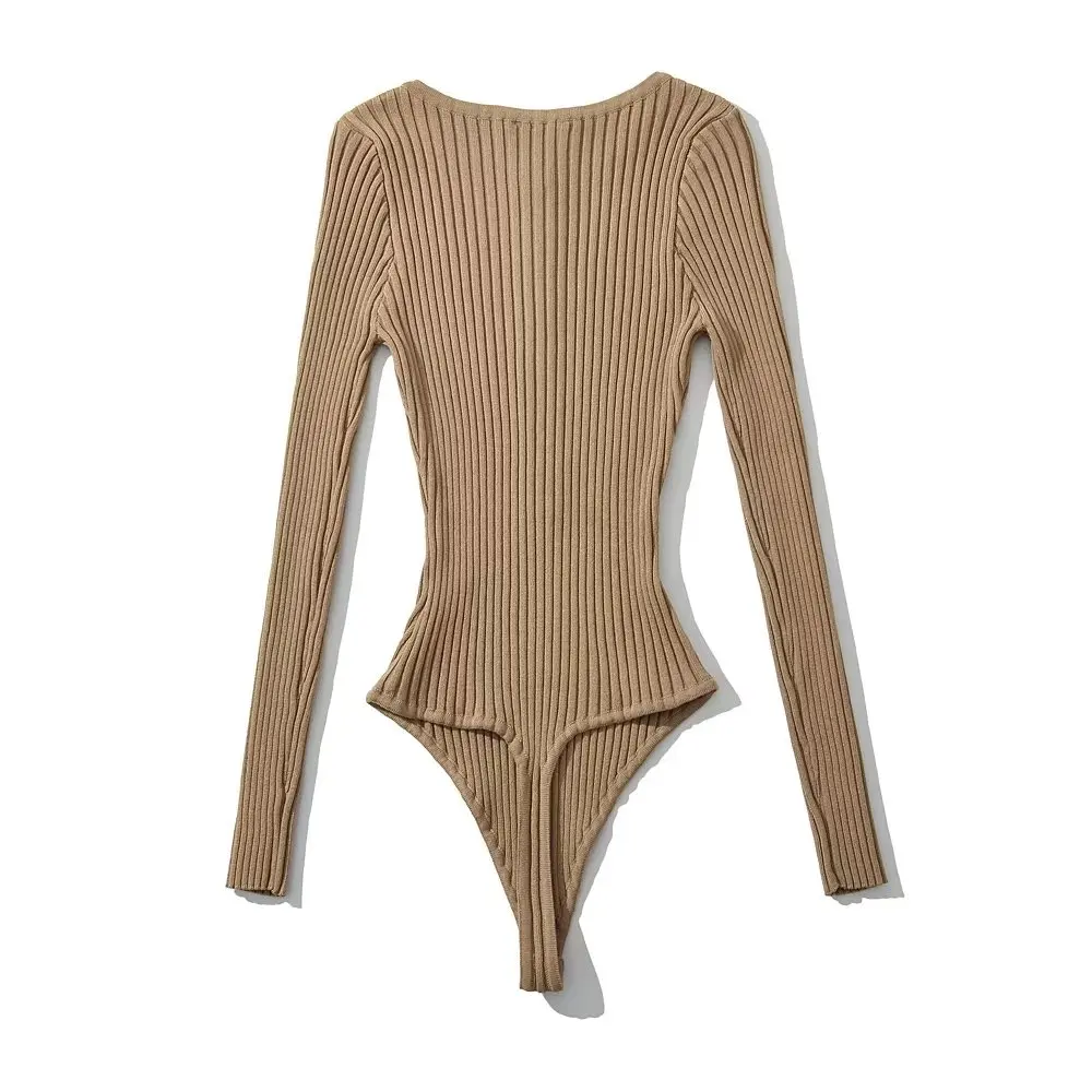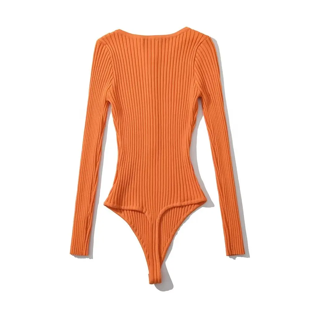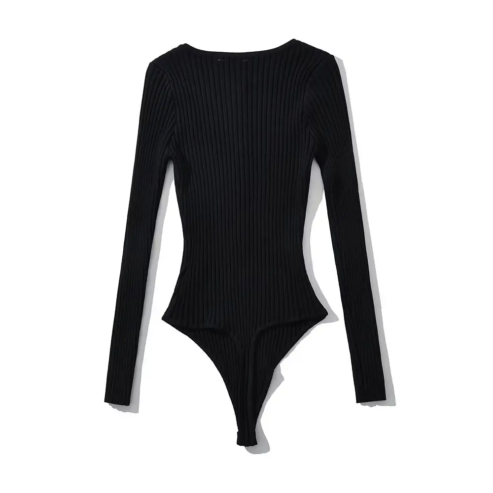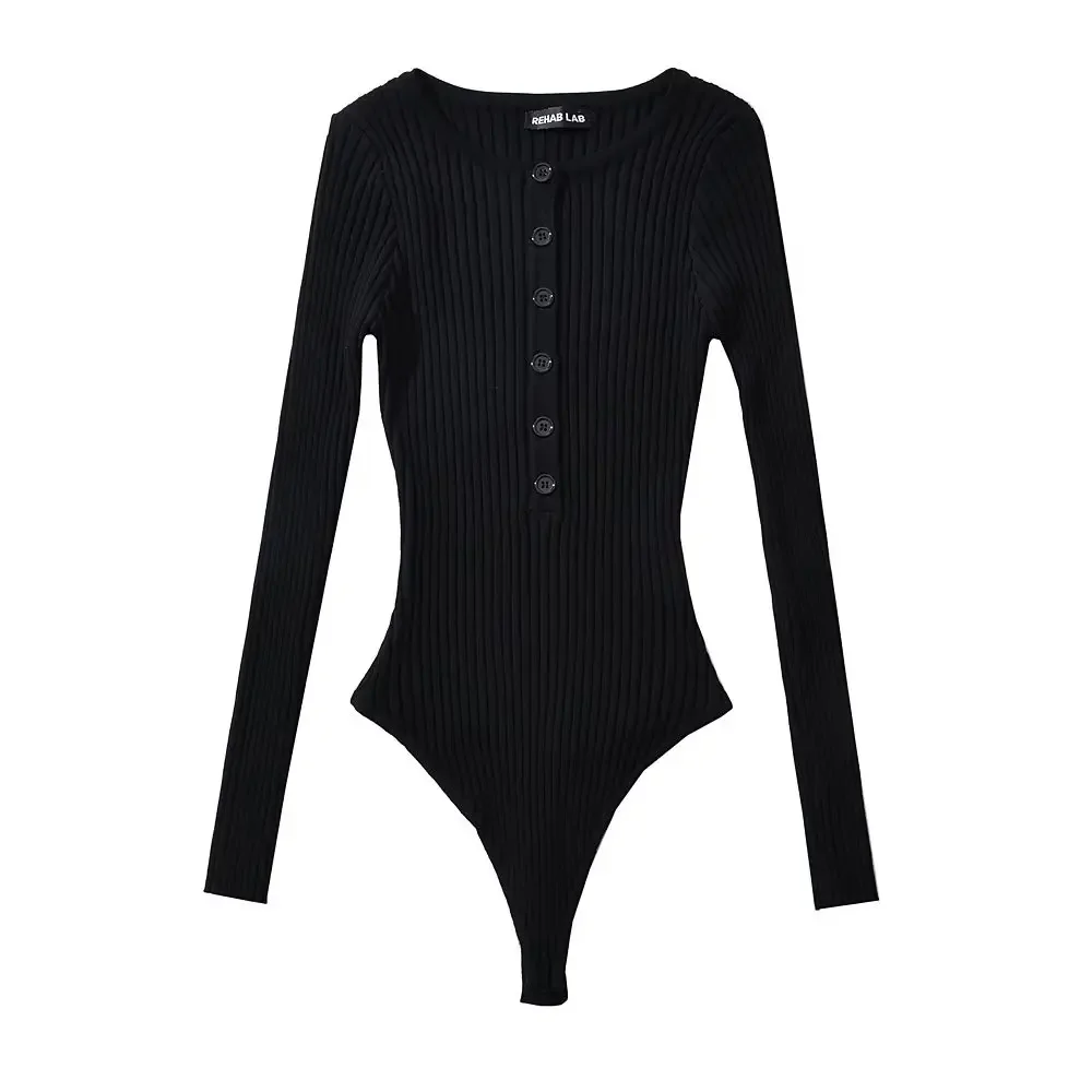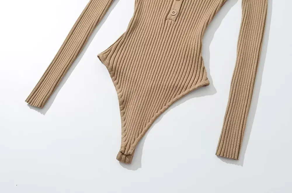 Body Femme Manches Longues String Côtelé À Bouton Extensible