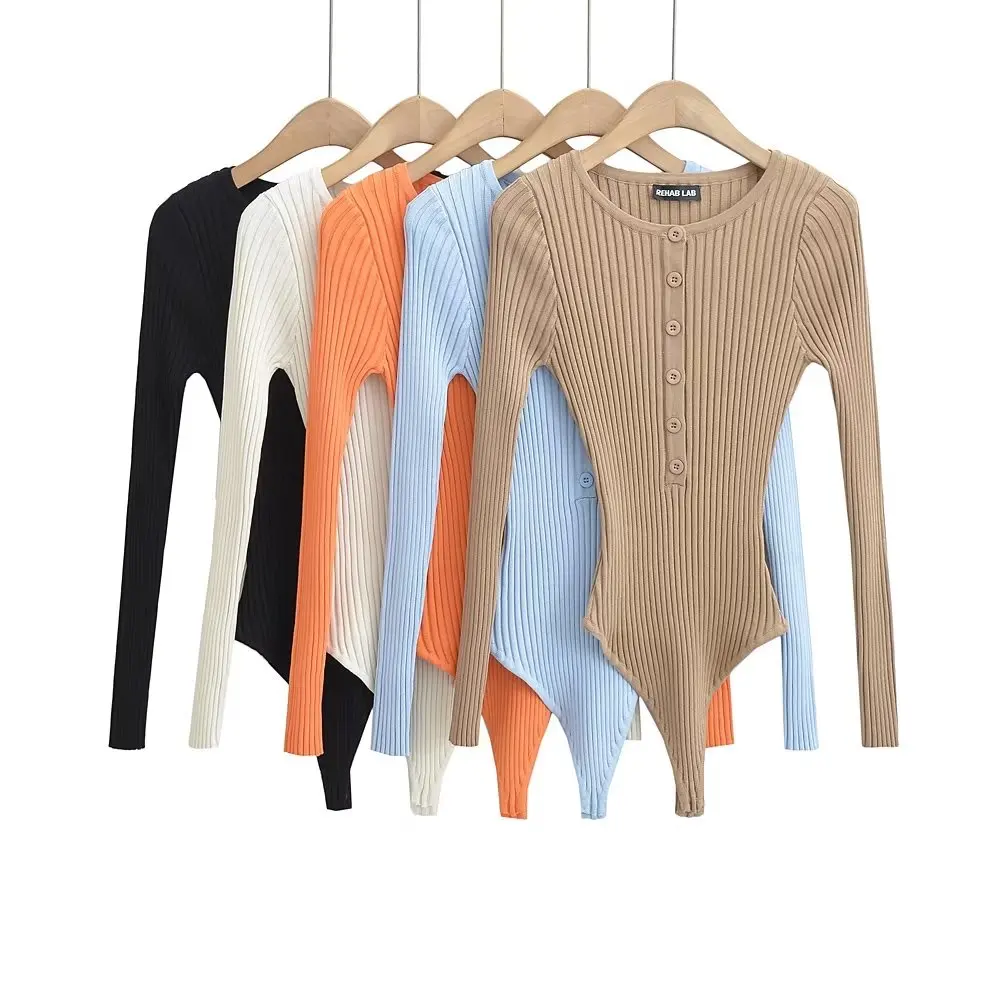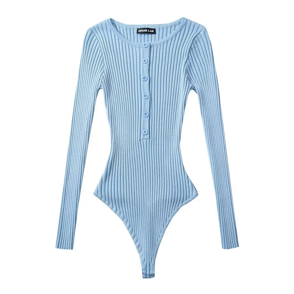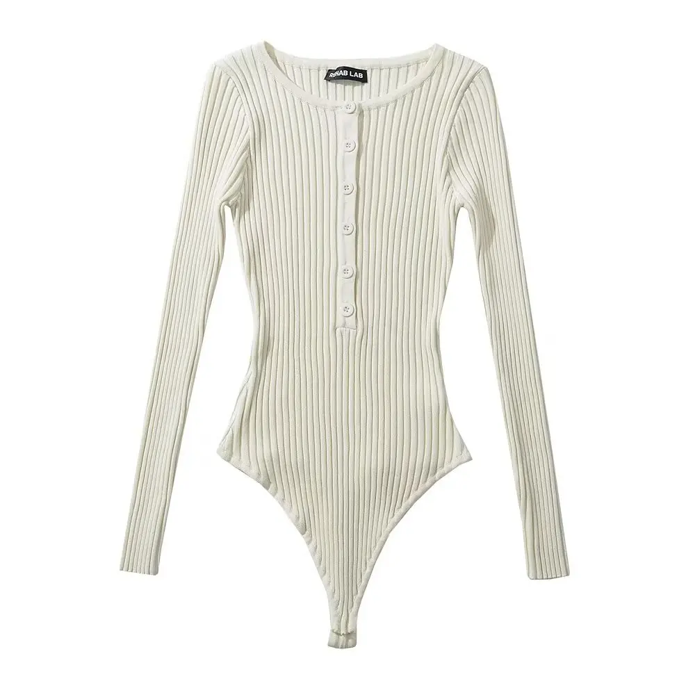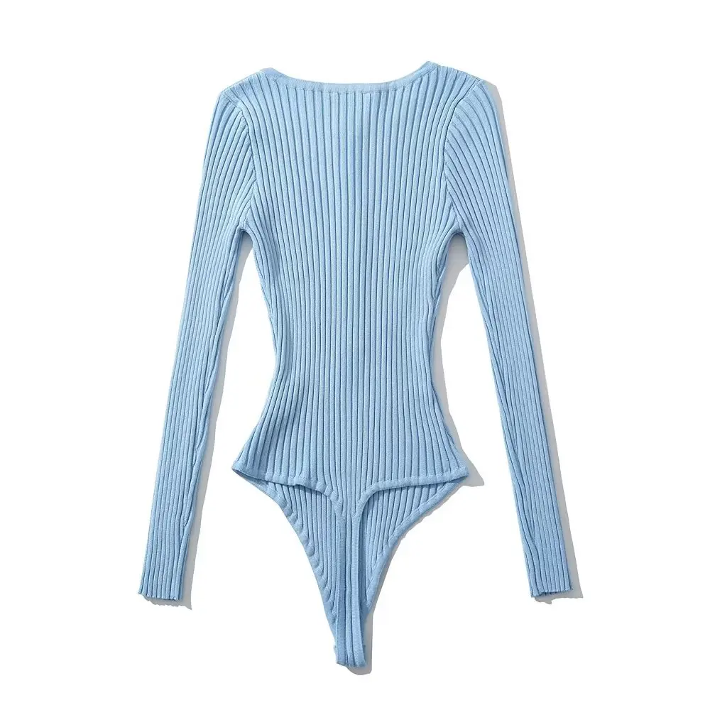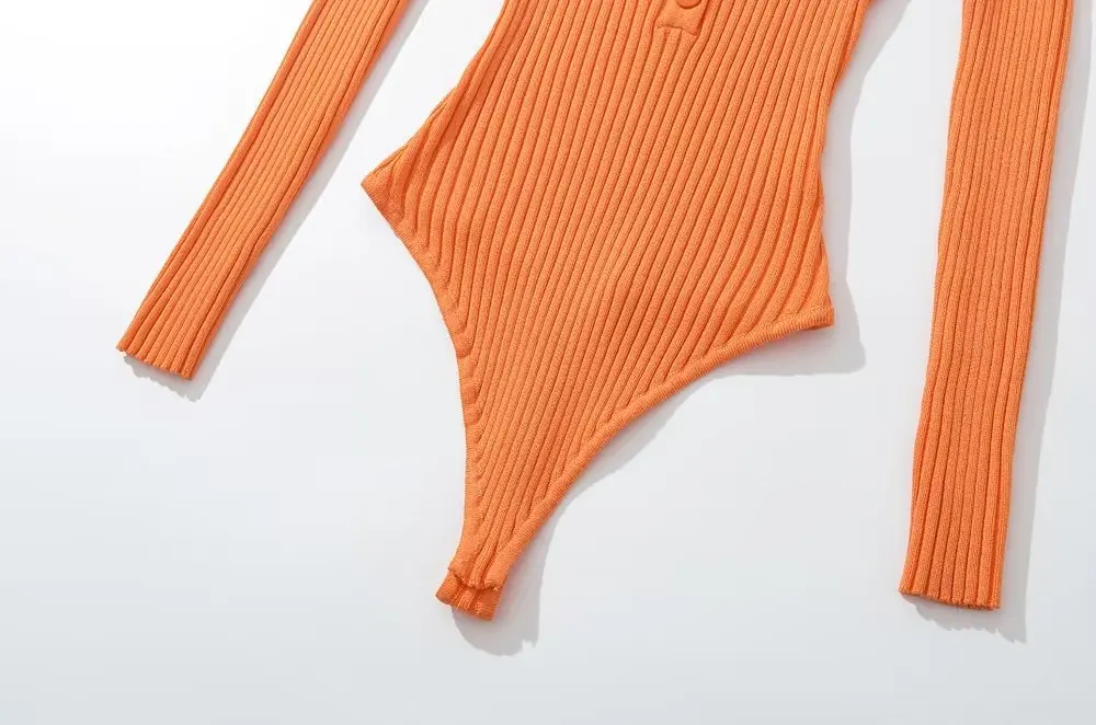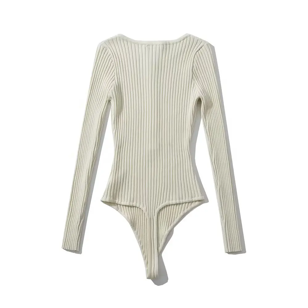 Body Femme Manches Longues String Côtelé À Bouton Extensible