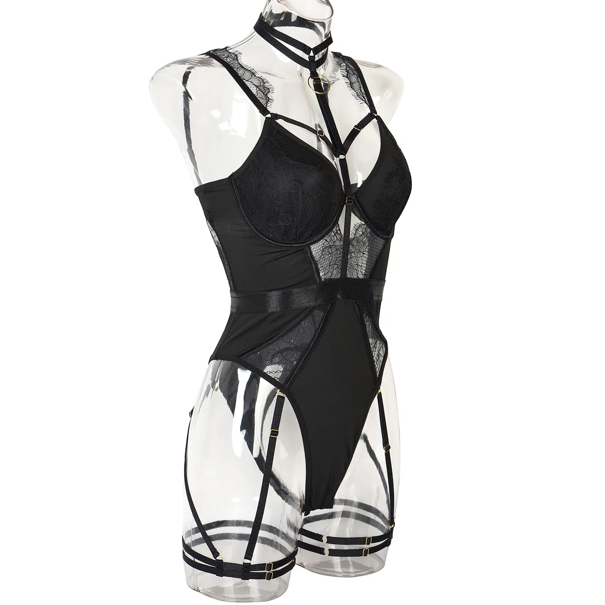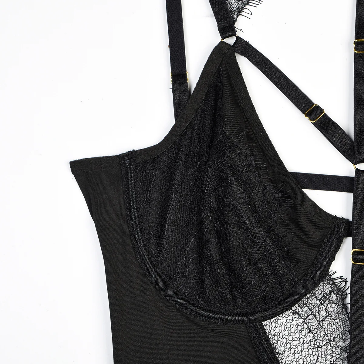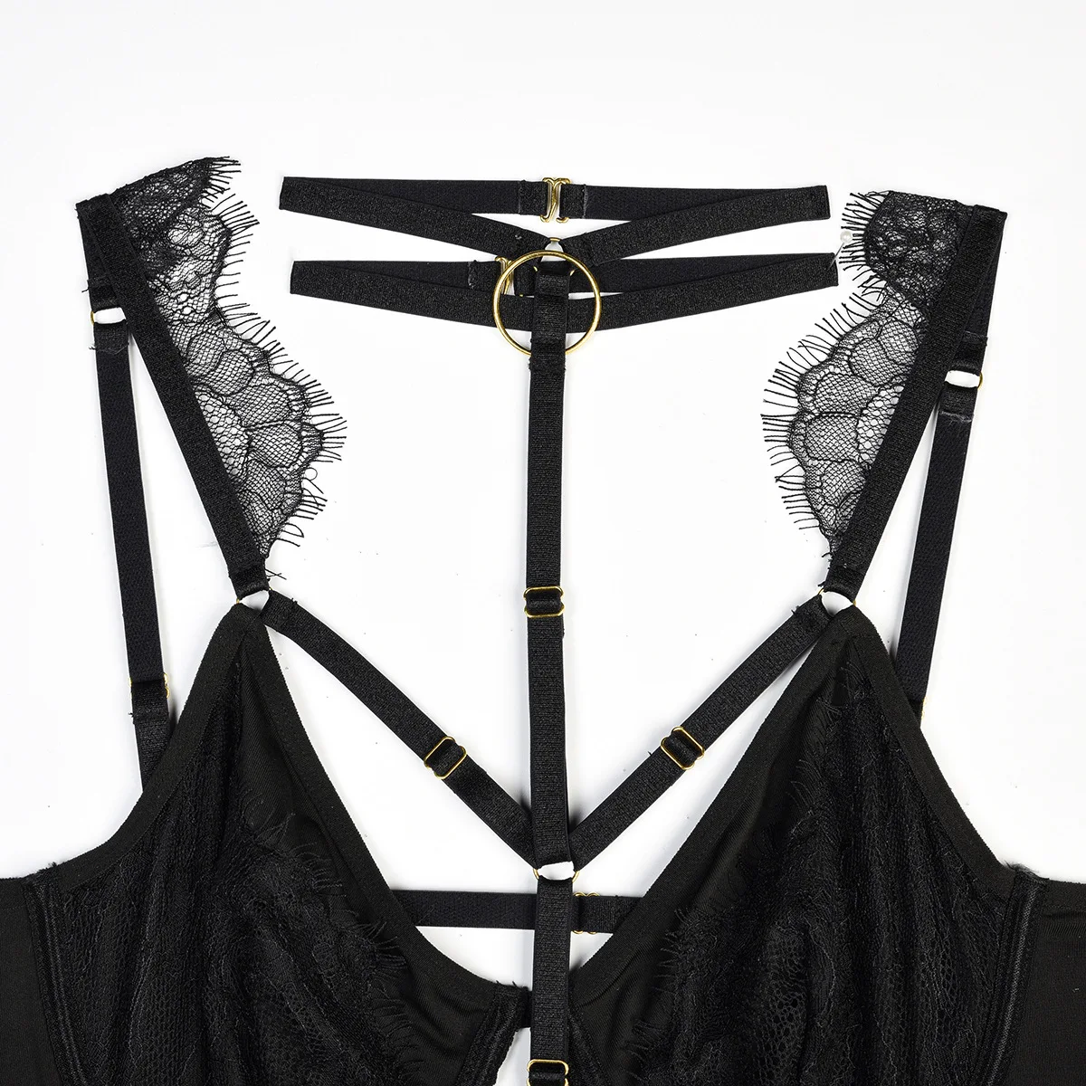 Body femme noir lingerie harnais avec dentelle et jarretelles style sexy et structuré — Sublimez votre silhouette