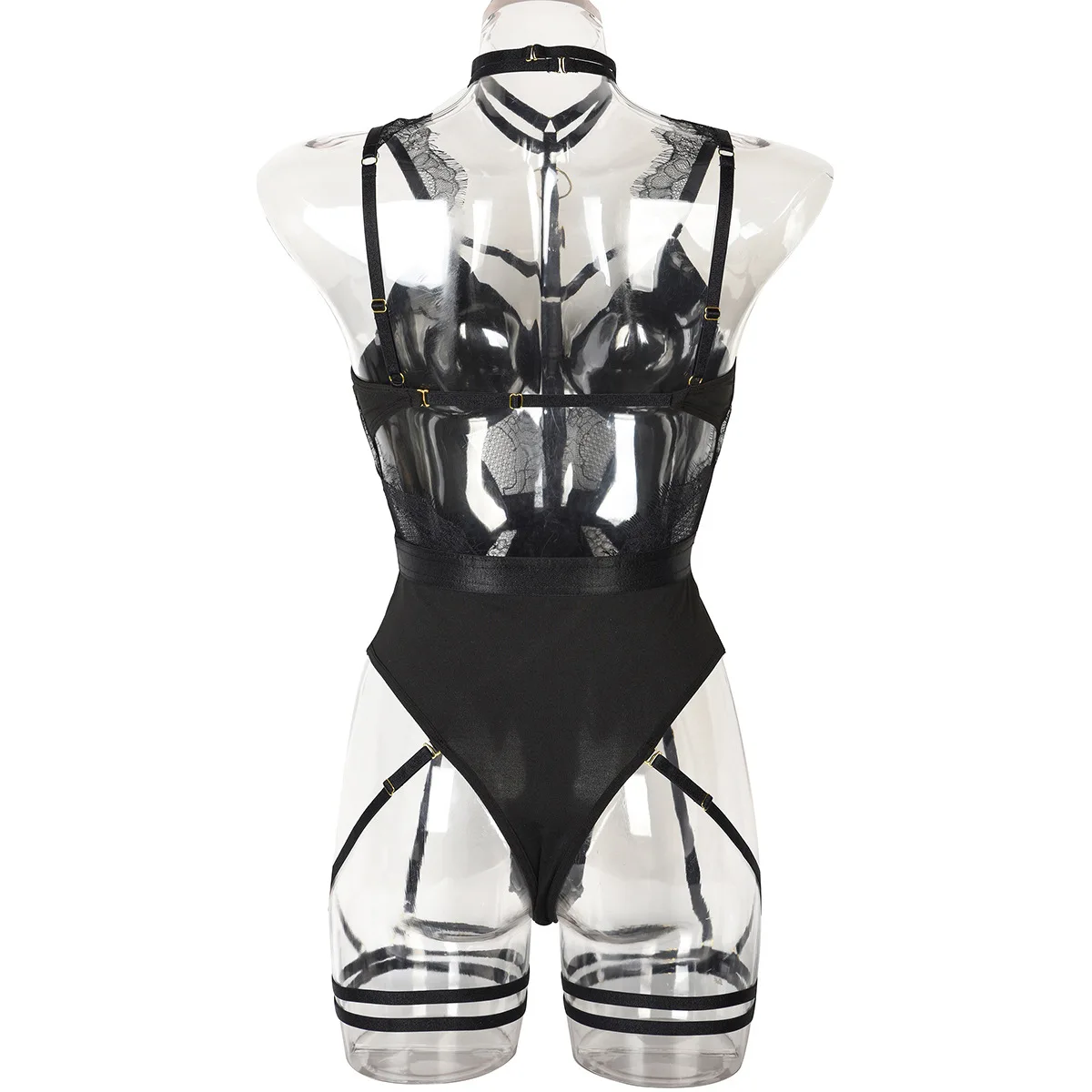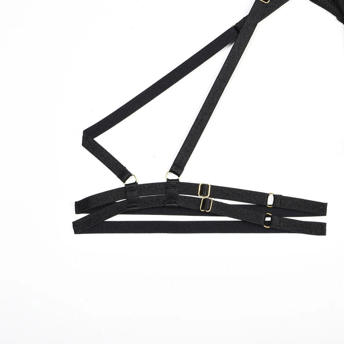 Ce body femme noir lingerie harnais avec dentelle et jarretelles style sexy et structuré associe un style harnais à des inserts de dentelle, transformant instantanément votre allure. Sa coupe structurée met en valeur vos courbes, tandis que les jarretelles ajoutent une audace irrésistible. En l’enfilant, vous dégagez une présence sensuelle, parfaite pour vous sentir désirable et élégante. C’est la promesse d’un rendu sculptant et séduisant qui transforme chaque instant en une occasion spéciale.