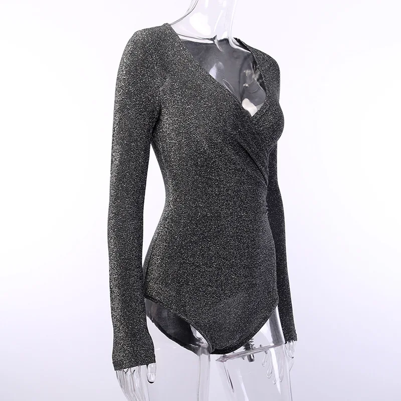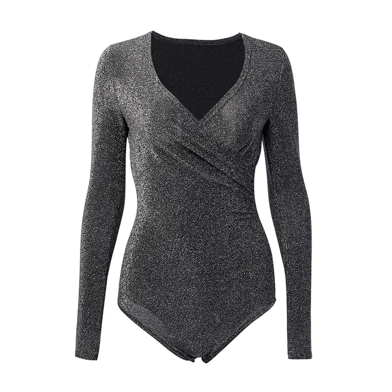 body femme paillette élégant à manche longue