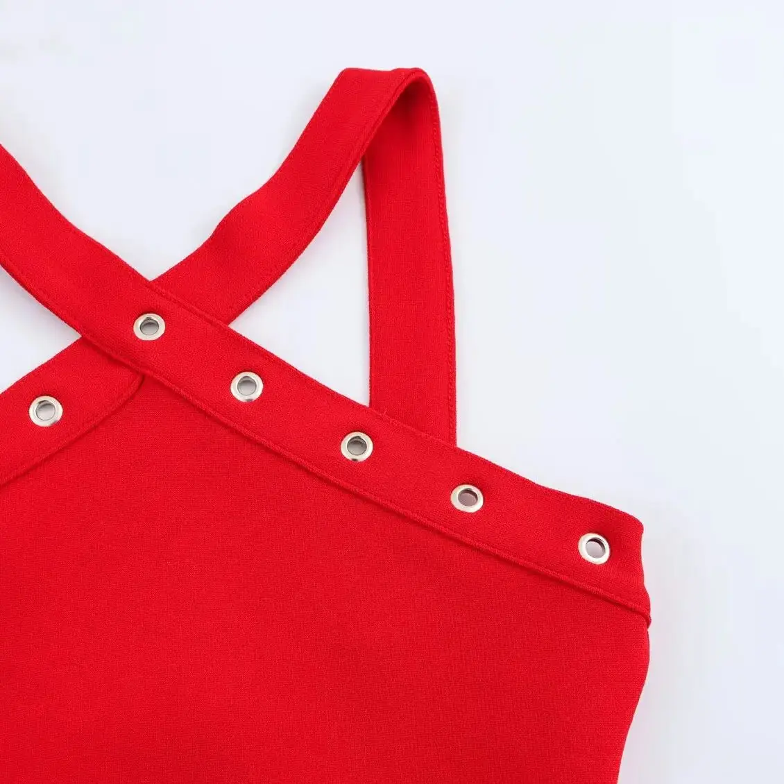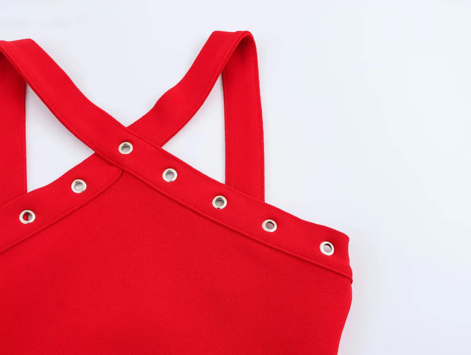 Body Rouge Femme À Bretelle Croisée Et Boutons Métalliques : un must-have