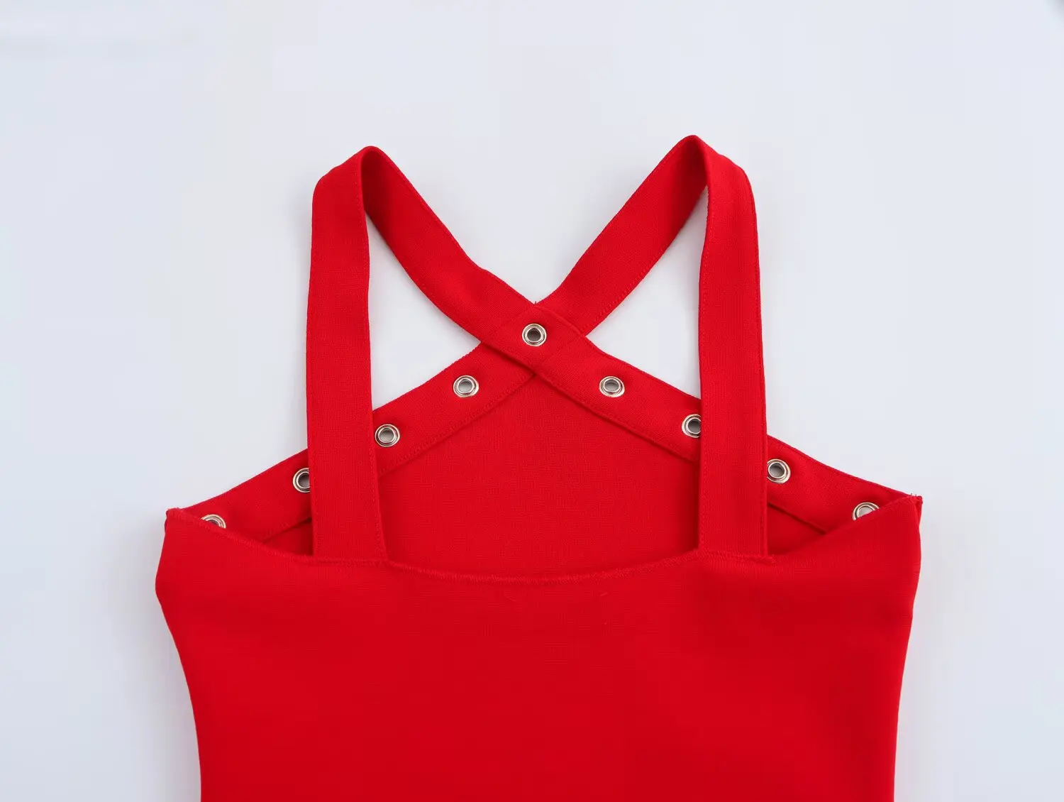 Imaginez-vous dans ce body rouge à bretelles croisées